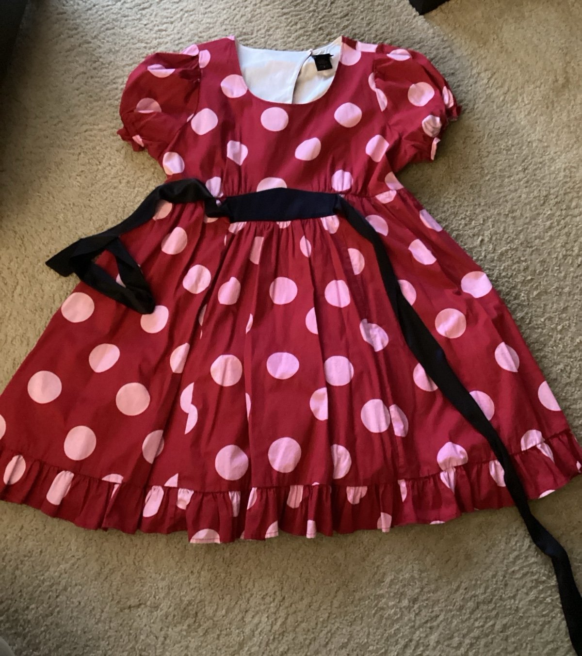 Disney Minnie Mouse Dress…bought off Mercari…circles were white but l took to have dry cleaned and the red color turned the dots to pink but it is still a cute dress in very good condition….has a crinoline slip under top skirt